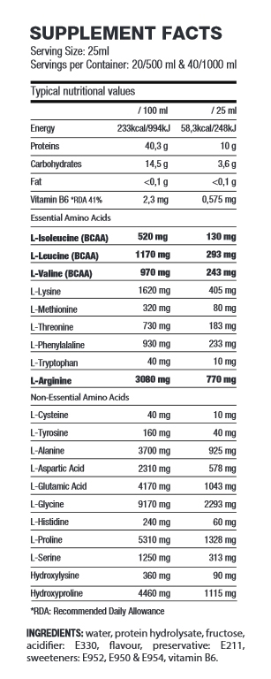 Aminokiseline su organske smese iz kojih se grade proteini. Idealne su za dopunu ishrani sportista, koji žele da u peroidu teških i napornih treninga sačuvaju već stečenu mišićnu masu, a ujedno i poboljšavaju i absorbciju proteina unetih iz klasične hrane i samim tim pojačavaju anabolne procese u organizmu.Proteini su građeni od lanaca aminokiselina. U prirodi se nalazi 20-25 aminokiselina, a u molekulu proteina 200 aminokiselina, što znači da se lanci aminokiselina ponavljaju više puta. Kada se aminokiseline nalaze samostalno u krvi zovemo ih slobodne aminokiseline. Dve spojene aminokiseline zovu se dipeptidi; tri -tripeptidi; više aminokiselina (50-100)-polipeptidi. Više polipeptida čine proteine. Oni se razlikuju po broju aminokiselina, obliku molekula i frekvenciji javljanja.Aminokiseline su osnovni gradivni elementi proteina. Vrednost proteina koji se nalaze u namirnicama biljnog i životinjskog porekla procenjuje se na osnovu aminokiselinskog sastava. Aminokiseline koje se sintetišu u organizmu nazivaju se neesencijalne, dok se aminokiseline koje naš organizam nije u mogućnosti da sintetiše nazivaju esencijalne aminokiseline i stoga ih je neophodno unositi putem ishrane.