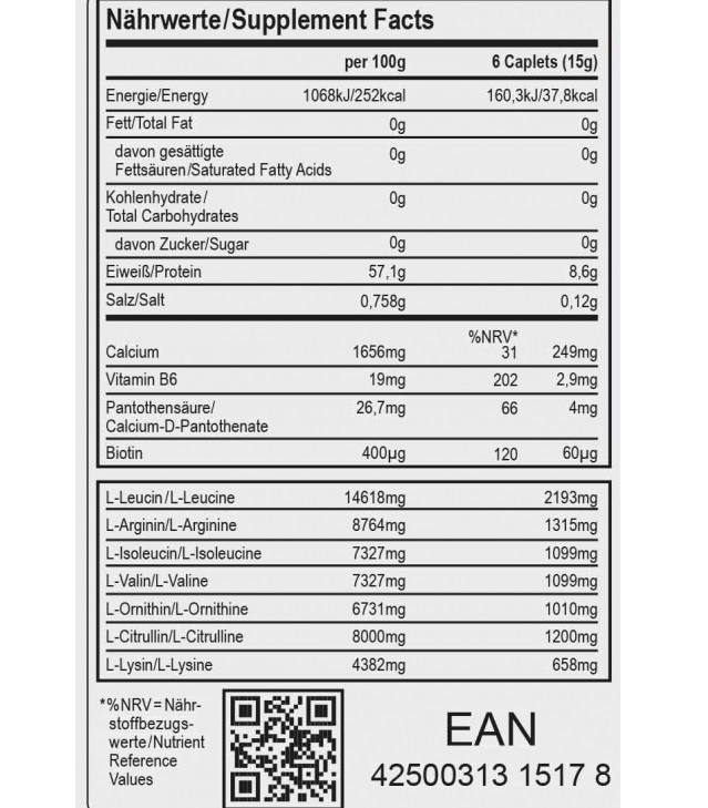 - B 6 i Pantotensku kiselinu ( b vitamine ) neophodne za pravilan metabolizam aminokiselina koji se nalaze u suplementu.