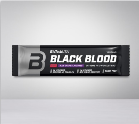 Black Blood je kompleks koji je napravljen sa visokom dozom kofeina i aktivnim sastojcima koji će doprineti produkciji nitrogen monoksida i karnozina. Magnezijum, niacin i vitamin B6 doprinose normalizaciji energetskog balansa i metaboličkih procesa, a ujedno eliminisu stres i umor. Vitamin B6 doprinosi normalnoj proteinskoj sintezi kao i sintezi glikogena. Magnezijum doprinosi normalnoj funkciji mišića, cink metabolizmu i oksidaciji masti, kao i sintezi proteina, te podizanju testosterona u krvi.