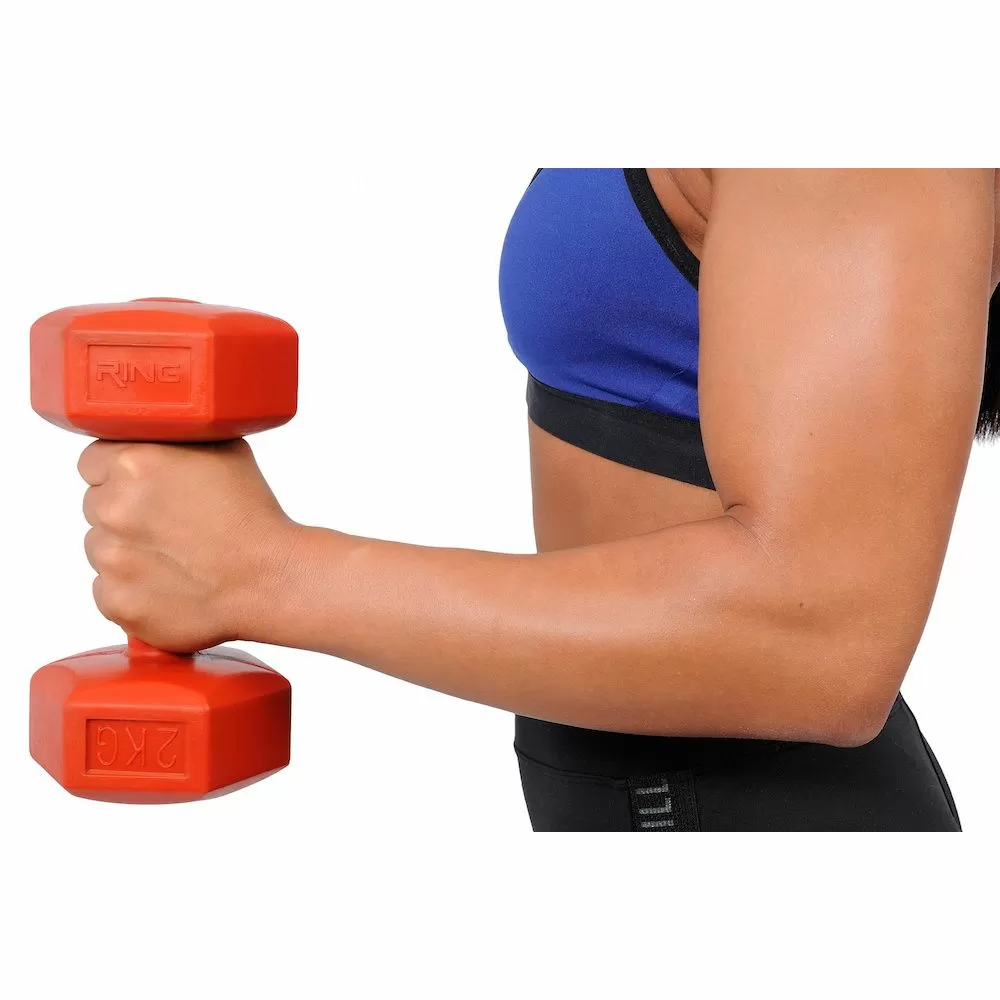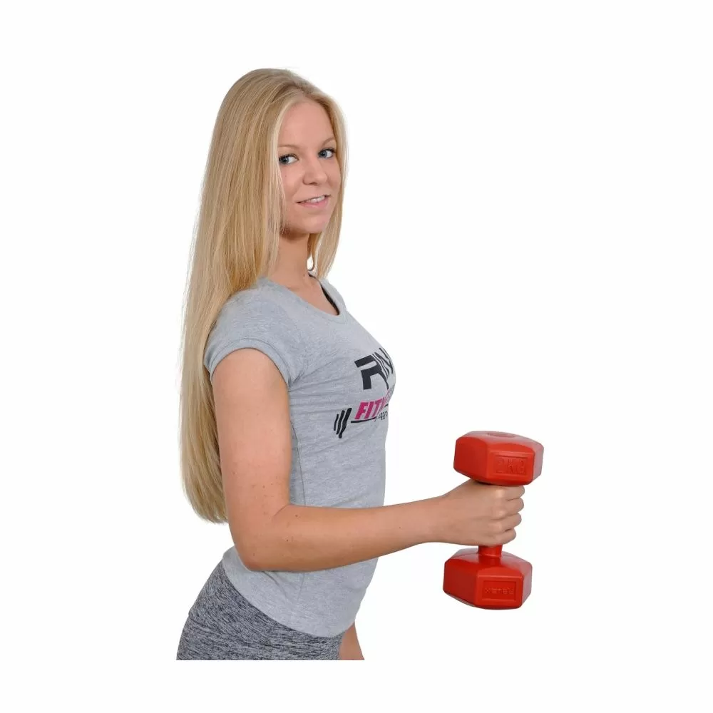 • bučica plastična 1x2kg, za aerobne vežbe i oblikovanje ruku i gornjeg dela tela,