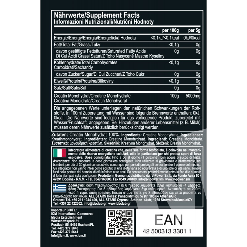 All Stars koristi kao sirovinu 100% čist kreatin nemačkog porekla (sve bolje firme koriste samo nemački kreatin) koji se odlikuje visokim kvalitetom bez prisustva nečistoća: kreatinina, dicijandiamida, dihidrotriazina (što potvrdjuje HPLC metoda kontrole).