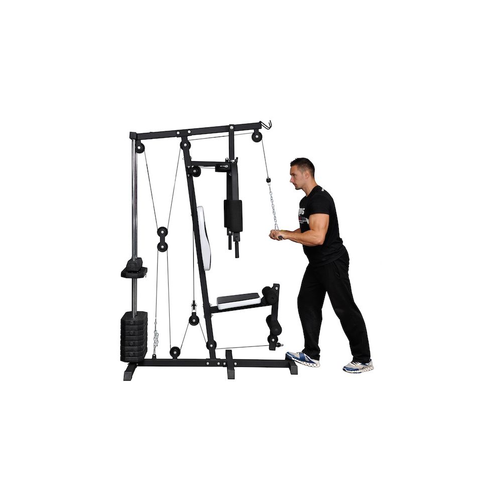 Odlična sprava za kućnu upotrebu. Dosta različitih vežbi se može izvoditi. Ne znam da li maxium 50 kg ili se može dodati još tegova.Svakako sasvim dovoljno za taj nivo rada.Tegovi su plastični tako da nema buke.Prezadovoljan.