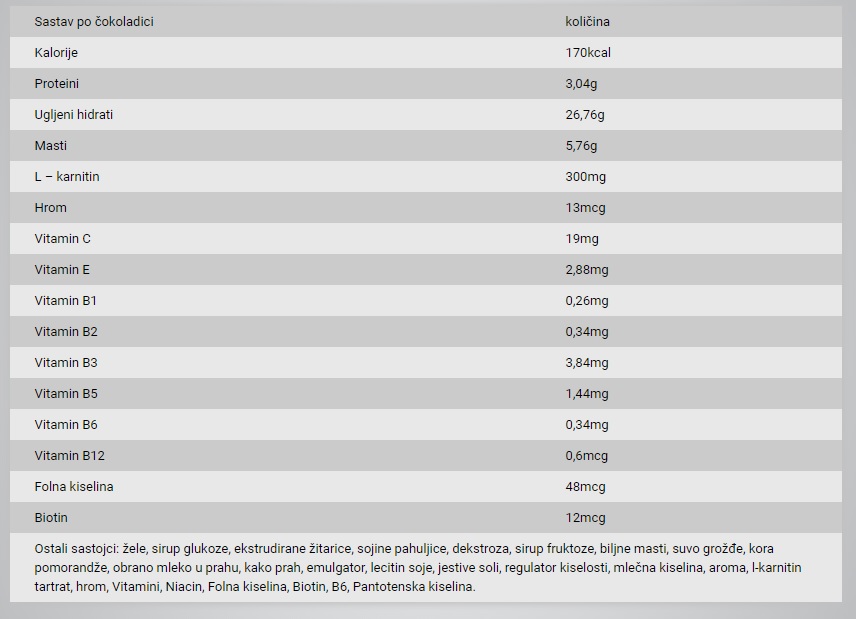 Napomena: Navedeni sastav je za ukus narandža - crna čokolada