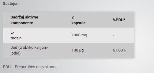 Ovaj proizvod je dodatak ishrani na bazi L-tirozina i joda. Jod doprinosi normalnoj proizvodnji hormona štitne žlezde i normalnoj funkciji štitne žlezde.