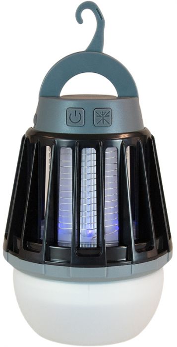 Lagana i mala lampa na diode, puni se USB-om, ujedno se može uključiti na lampu, koja lovi komarce ili druge insekte. Podesivo osvetljenje lampe – 3 moda svetlosti: 15, 50 i 100 lumena. Pri vrhu je kukica, da se lampa može okačiti. Izrađena je od ABS materijala i silikona. Litijumska baterija na punjenje za višestruka punjenja, 2000mAh. Stepen zaštite je IPX6. - Visina 119 mm i širina prečnik 80 mm. - Baterija za višestruko punjenje USB-om, 2000 mAh. - Vreme punjenja je 6 sati za običnu lampu i 4 sati za lampu za komarce. - Lampa za komarce radi do 15 sati. -Obična lampa na maksimumu radi do 2 sata, na modu 50 lumena do 12 sati i na modu 15 lumena do 6 sati.