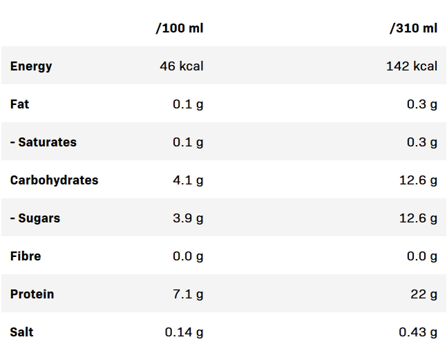 Ovaj već pripremljen proteinski napitak (RTD) sadrži 22 gr mlečnog proteina. Lako je svarljiv i lagodan za stomak usled činjenice da ima 0 laktoze i 0 dodatog šećera.