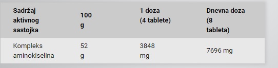 Način upotrebe: uzimati po jednu dozu (4 tablete) 15 minuta pre i posle treninga. U danima bez treninga uzimati po jednu dozu ujutru i uveče.