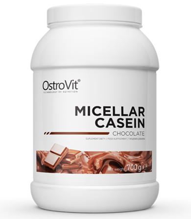 OstroVit Micellar Casein je dodatak ishrani koji sadrži micelarni kazein visokog kvaliteta. Kazein je sporodelujući protein koji snabdeva mišićno tkivo aminokiselinama i pruža osećaj sitosti duži vremenski period. Zato je idealan za unošenje uveče jer obezbeđuje mišićima hranu tokom noći. Kazein se često dodaje u proteinske komplekse koji sadrže brzodelujuće proteine, kao što je protein surutke, jer se tako dobija efekat produženog delovanja. On štiti organizam od kataboličkih procesa i do 12 sati i doprinosi razvoju i rastu mišićne mase, kao i koštane strukture. Dejstvo kazeina je naučno potvrđeno. OstroVit Micellar Casein je namenjen svim vrstama sportista u čijoj ishrani je neophodan povećan unos proteina. Idealan je za periode nabacivanja mišićne mase i za dijete za redukciju masnih naslaga. Najbolje ga je uzimati u večernjim časovima, pred spavanje. OstroVit Micellar Casein obezbeđuje: - izvor kazeina visokog kvaliteta, odličnog ukusa čokolade i vanile sa niskim sadržajem masti i ugljenih hidrata - 22,5 g (u jednoj porciji) proteina sa produženom apsorpcijom aminokiselina - protein izuzetnog ukusa bez dodatog šećera - snažan antikatabolički i istovremeno anabolički efekat sa dejstvom i do 12 sati - suplement za uzimanje pre spavanja - regeneraciju mišića - olakšava mršavljenje Preporučeno doziranje i način upotrebe Za pripremu proteinskog obroka rastvoriti jednu dozu (30 g = 3 merice) proizvoda u 200 ml vode ili mleka i promešati u šejkeru. U zavisnosti od potreba, piti jednu do dve doze dnevno.
