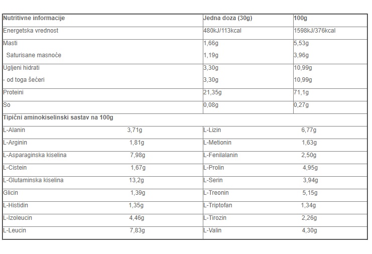 – sadrži 71% Whey protein koncentrata– napredna formula sa dodatom mlaćenicom– gust i ukusan šejk spremljen samo sa vodom– nizak sadržaj ugljenih hidrata i masti– bez glutena i aspartama.
