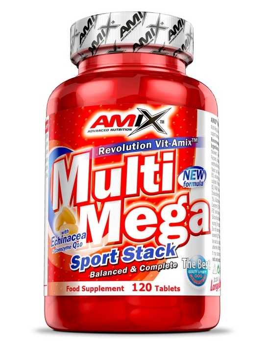 AMIXT Multi Mega Stack je jedinstvena i odabrana mešavina vitamina minerala koji su neophodni za podršku osnovnim funkcijama ljudskog tela tokom dana. Vit-AmixT-ova formula sadrži više od 40 važnih vitamina i minerala sa dodatom ehinaceom. Ova je jedinstvena kombinacija pomaže održanje dobrog zdravlja i opšte funkcije ljudskog tela. Multi Mega Stack je dizajniran prvenstveno za osobe sa zahtevnom fizičkm ili mentalnom aktivnošću. Kao takav, Multi Mega Stack pomaže važne funkcije metabolizma, fizičkih i mentalnih performansi, odlaže nastanak napora i ubrzava regeneraciju nakon vežbanja.