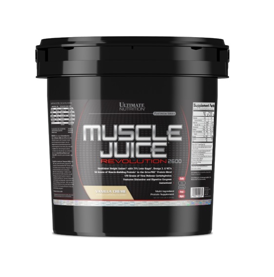 Muscle Juice Revolution 2600 je najbolji visokokalorijski gejner. Bogatstvo ultrakvalitetnih kalorija i 56 g proteina iz multikomponentnog blenda u svakom serviranju garantuju brzu izgradnju mišićne mase i snage. Najnoviji Carbo-Lyn® visokomolekularni ugljeni hidrati prolaze kroz stomak 80% brže nego dekstroza ili šećer, snažno upumpavajući aminokiseline i glikogen u mišiće. Zdrave masti (omega-3, omega-9, i MCT) smanjuju holesterol, daju dodatnu energiju i ne talože se u salo!