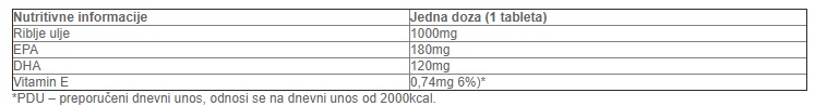 Dijetetski proizvod: DHA doprinosi održavanju normalne funkcije mozga i normalne funkcije vida. EPA i DHA doprinose normalnoj funkciji srca.