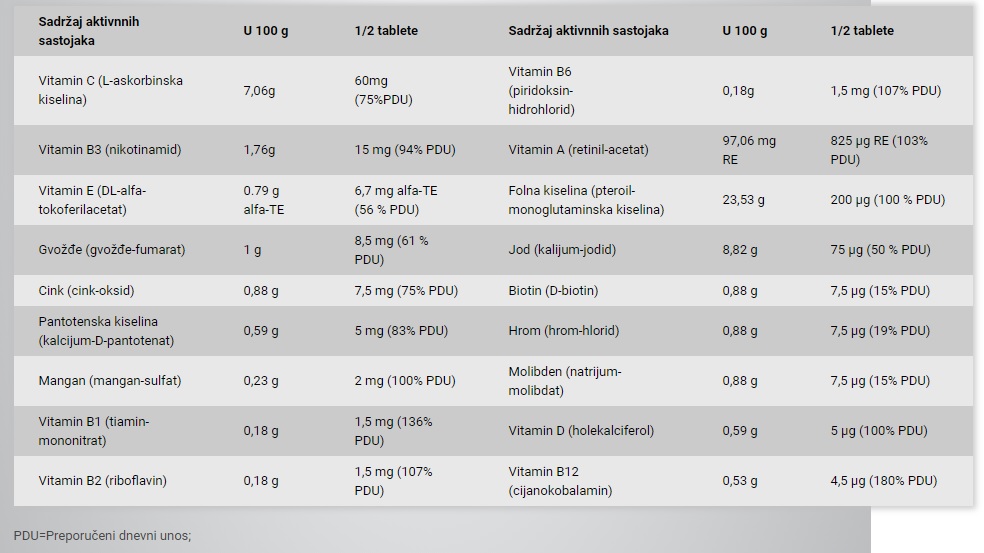 Način upotrebe: 1/2 tablete dnevno uz obrok