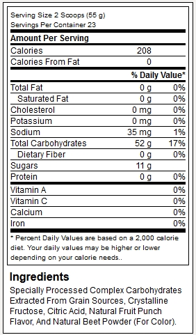 O važnosti brze i efikasne popune glikogenskih depoa govori to što ogroman broj sportista koristi karbo-napitke pre, za vreme i posle svojih treninga i utakmica. Ugljeni hidrati pokreću oslobađanje prirodnog hormona inzulina, koji transportuje amino kiseline i glukozu direktno u mišiće, i ujedno deluje kao anti-katabolik koji omogućava da se amino kiseline potpuno iskoriste za anabolizam umesto da uzaludno sagore u vatri katabolizma! Pure Muscle Carbs sadrži pun spektar ugljenih hidrata od prostih do kompleksnih sa različitim vremenima apsorpcije, tako da vaš trening ili utakmica budu "pokriveni" energijom od prvog do poslednjeg minuta. Tu je i natrijum - esencijalni elektrolit koji se gubi prilikom znojenja, često dovodeći do grčeva u mišićima. Ukratko, Pure Muscle Carbs ima sve što vam treba tokom treninga, takmičenja ili utakmice