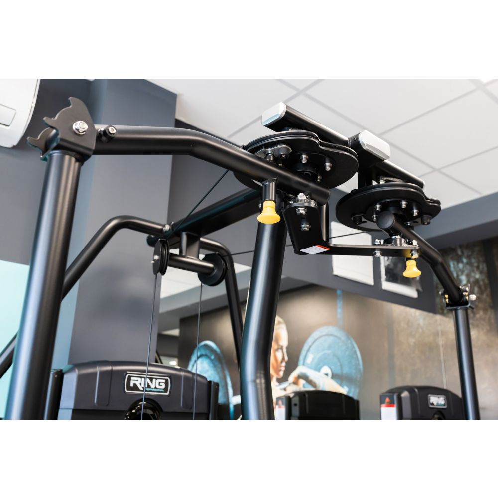 Ploče od čistog čelika sa gumenim amortizerima poboljšavaju izdržljivost sprave, povećavaju preciznost i smanjuju buku tokom vežbanja. Svaka sprava ima podešavanja takva da bude udobna i prilagođena pokretima tela. Ergonomski jastuci od sintetičke kože (PU) pružaju udoban oslonac za sedenje i potporu telu. Rukohvati izrađeni od legure čelika (d=40mm) brušeni na visokim temperaturama i procesima tvrdog hromiranja imaju odličnu otpornost na koroziju i habanje.