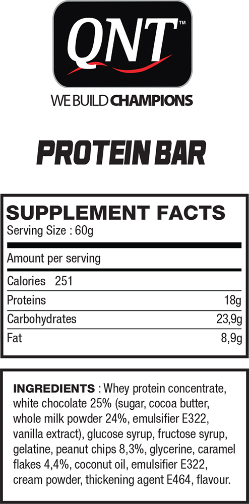 Proteini (16 gr), ugljeni hidrati (25 gr), masti (9 gr), kikiriki.