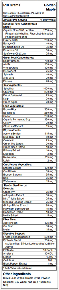 Vitamini, minerali, enzimi, prebiotici i probiotici, esencijalne masne kiseline, antioksidanti i razni drugi sastojci neophodni su za optimalno zdravlje, vitalnost, imunitet i fizičke performanse. Standardni multivitaminski i slični preparati nisu najbolji način da svom telu obezbedite sve ove materije. Razmislite još jednom, jer često sadrže sintetičke sastojke, koji se uz to i slabije apsorbuju! Vegetable Greens je nova formula sa 62 vitalna sastojka, isključivo iz najbogatijih prirodnih izvora kao što su brojni dragoceni biljni esktrakti, zatim najhranljiviji delovi brokolija, karfiola, lucerke, spanaća, peršuna, celera, pšeničnih klica, heljde, ječma, organskog lecitina, lanenog ulja, bundeve, noćurka, morskih algi i plodova mora i mnogo toga drugog. Na ovaj način svi sastojci su 100% organski i prirodni, harmonično ukomponovani i maksimalno iskoristljivi, donoseći vašem organizmu bogatu riznicu zdravlja, snage i vitalnosti.