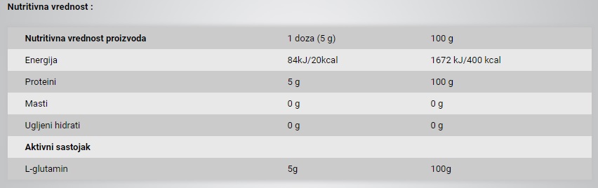 Sastojci: 100% L-glutamin