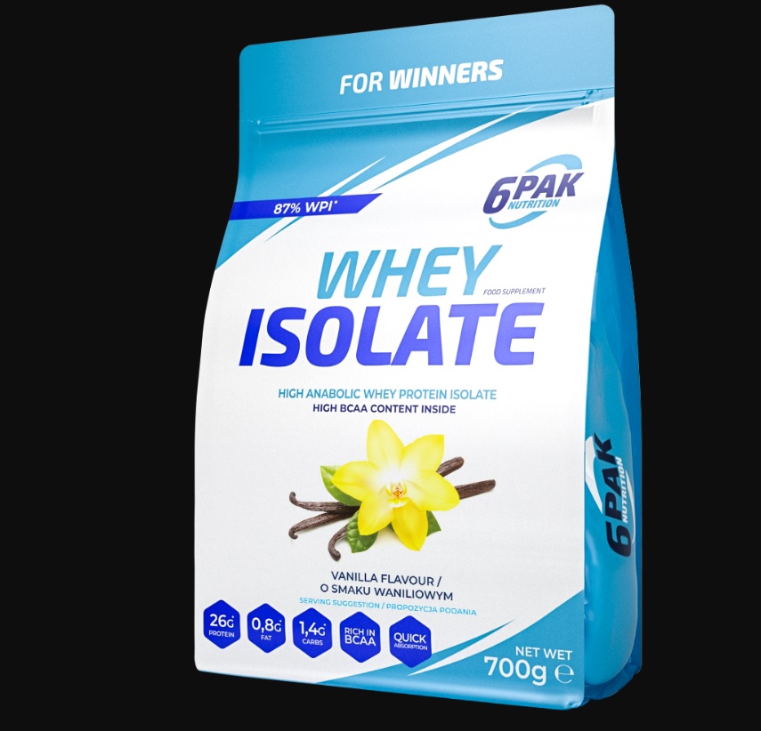 6PAK WHEY ISOLATE je proteinski suplement dizajniran da bude funkcionalan i ukusan. Karakteriše ga izuzetno visok proteina i sadržaj masti i ugljenih hidrata samo u tragovima. Whey protein izolat važi za jedan od najboljih izvora proteina sa izuzetno brzom apsorpcijom i idealnim amino kiselinskim sastavom. Zato se ovaj protein preporučuje za upotrebu posle treninga, kada je svaki minut važan. 6PAK WHEY ISOLATE efikasno utiče na izgradnju mišićne mase i ubrzani oporavak.