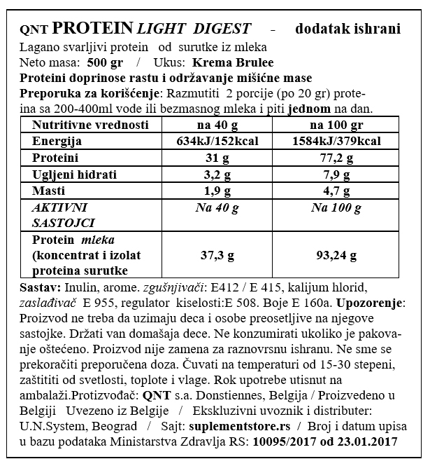 Light Digest Whey Protein nova je generacija izrazito lako probavljivog proteina. Kao takav pogodan je za svaki progam izgradnje i održavanja tonusa mišića, kao i pri gubljenju telesne težine, oporavku itd. Light Digest Whey Protein je poseban zato što u svom sastavu sadrži prirodno voće (sušenu malinu, sušeni limun, sušenu bananu, sušeni kokos) zbog čega je lako svarljiv i fantastičnog ukusa.