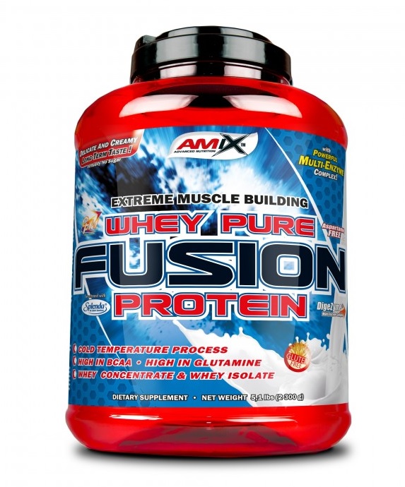 WheyPro FUSION Visokokvalitetan protein surutke WheyPro FUSION sa izvanrednom punoćom ukusa, bez aspartama. # izgradnja čiste mišićne mase # održavanje pozitivnog azotnog bilansa # sadrži whey koncentrat i CFM whey izolat # ubrzava oporavak # ubrzava mišićni rast # ne sadrži aspartam WheyPro FUSION sadrži 75% čistog proteina dobijenog filtracijom na niskim temperaturama, kako se dobija kvalitetan WPC whey koncentrat i CMF izolat surutke koji osiguravaju visoku biološku vrednost proteina. Ovakav protein se lako vari i brzo dospeva u krvotok, čime je omogućena adekvatna nadoknada proteina u momentu kada je to najpotrebnije. Takođe, protein surutke obezbeđuje i održavanje pozitivnog azotnog bilansa, što znači da se sprečava razgradnja mišića i stvara osnovni uslov za njihov rast. U prilog navedenom ide visoka koncentracija BCAA i L-glutamina. Aminokiseline čuvaju mišićno tkivo tokom intenzivnog vežbanja a takođe imaju važnu ulogu procesima mišićnog oporavka. Tu se naročito mora pomenuti L-glutamin, koji podržava oporavak mišića, jača imuni sistem, pojačava hidrataciju mišićnih ćelija i podržava produkciju prirodnog( telesnog) hormona rasta. Ovo su dobri razlozi da podržite brz rast i regeneraciju vaših mišića, uživajući u punom i kremastom ukusu Amix™ Whey Pure FUSION proteina. Protein koji je dizajniran, kako za profesionalce tako i za rekreativce i praktično za svakoga ko želi da popravi kvalitet svojih mišića.